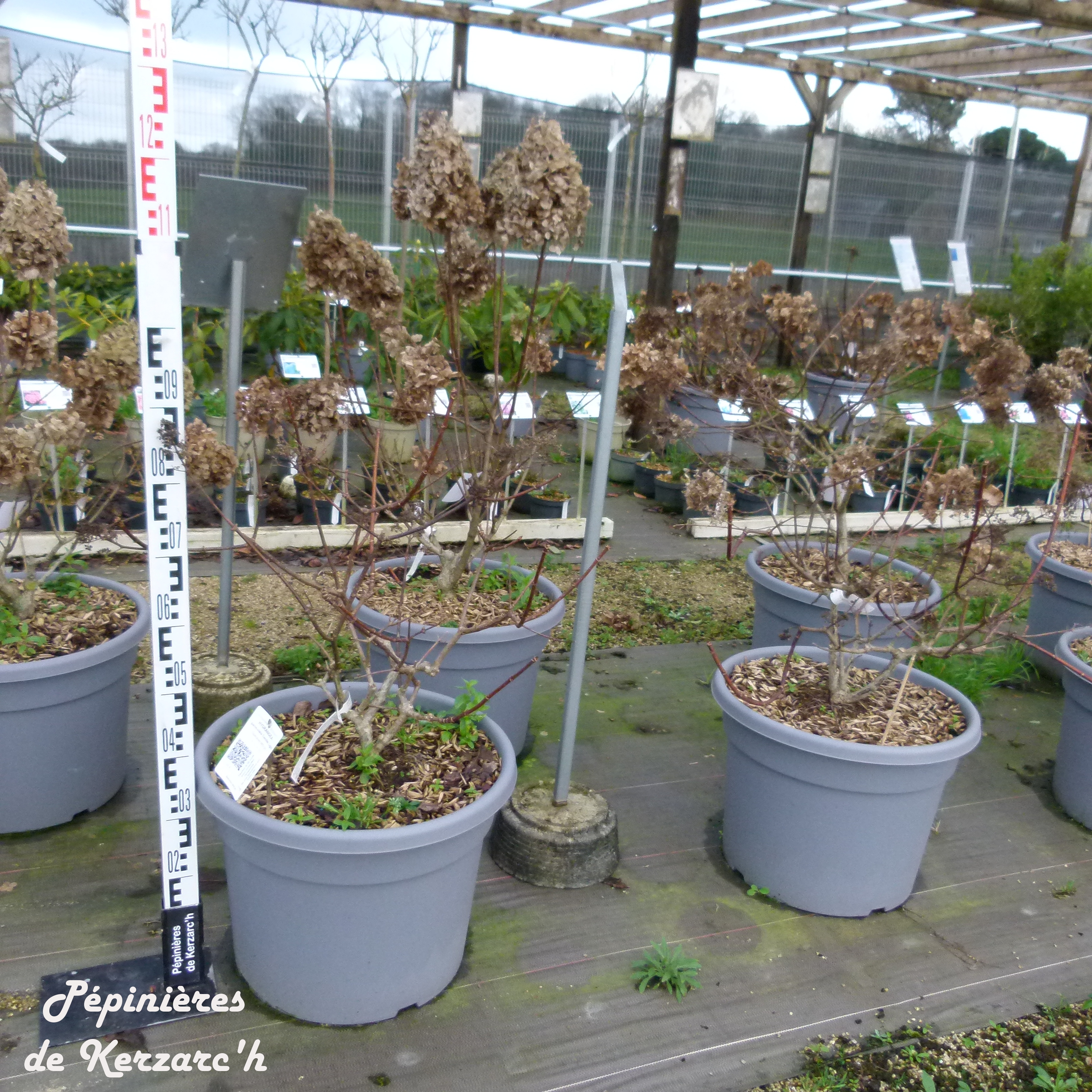 Origine géographiqueRussie (Ile de Sakhaline), Chine, Japon, pour l'espèce. EtymologieDu grec HYDOR (eau) et AGGEION (vase), en allusion au fruit en forme de coupe. Et hortense vient du latin HORTUS, signifiant Jardin. RusticitéSupérieure à -20ºC. En savoir plus sur la rusticité. DescriptionVariété au port érigé et ramifié de 2 m de hauteur et 1,50 m de largeur, avec des fleurs en forme de grandes panicules coniques blanches puis roses foncées de juillet à septembre. Conseils d'utilisationPréfère un sol riche léger à lourd, légèrement acide à neutre, humide à frais et bien drainé, au soleil ou la mi-ombre, le plein soleil vous procurera la plus belle floraison. Plante non considérée comme tolérante au sol sec, mais elle tolère beaucoup mieux une sécheresse temporaire que d'autres. |